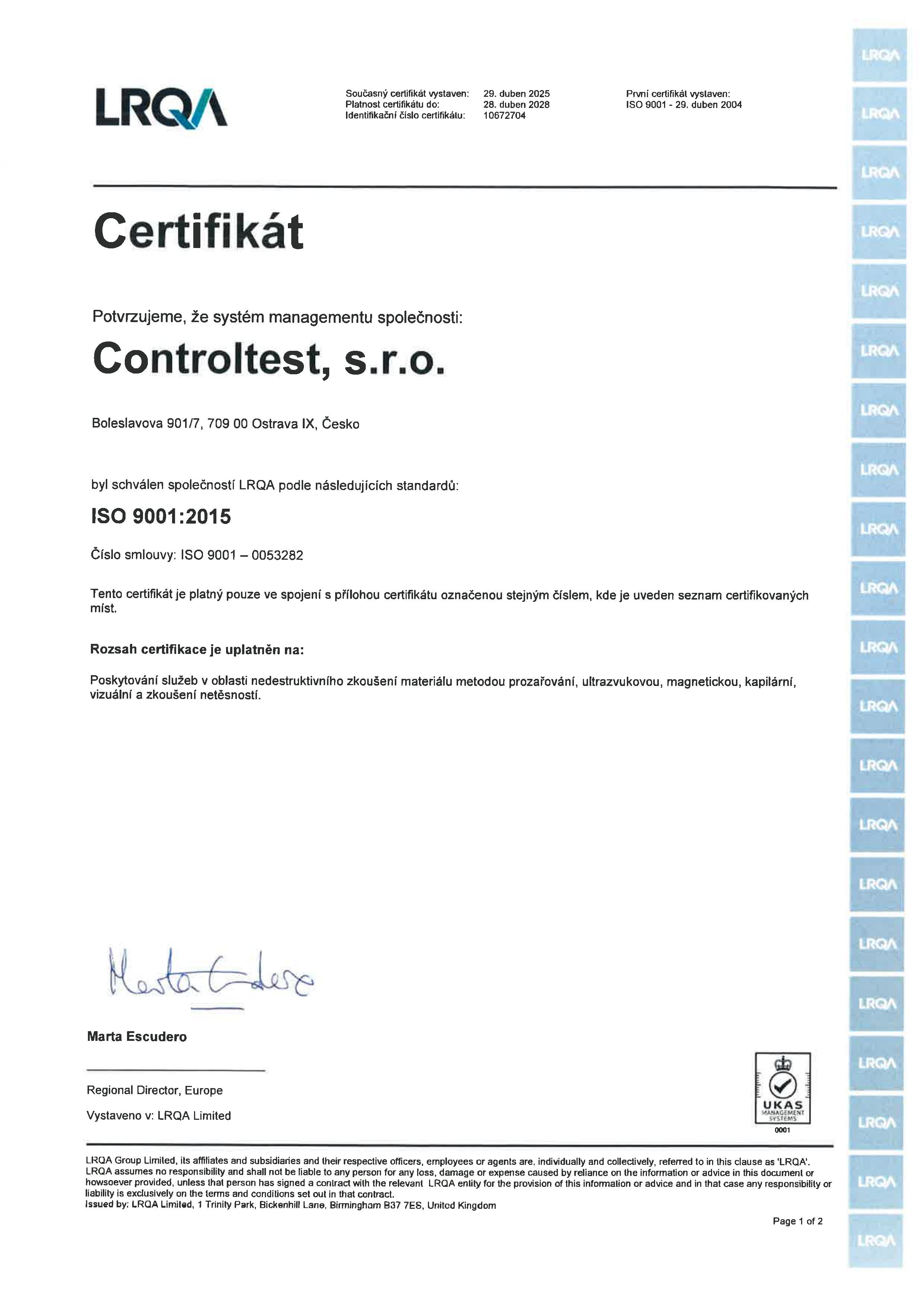 - Od roku 2004 plníme veškeré požadavky pro certifikaci dle EN ISO 9001:2000.
